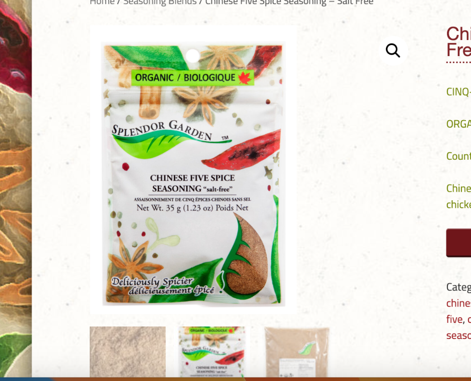 ORGANIC | SALT FREE Country of Origin: USA Chinese 5 spice, an authentic Asian experience that pairs well with chicken, pork, and veal.