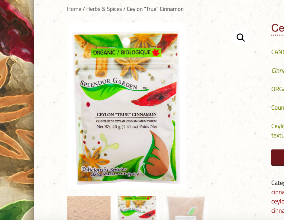 Organic Ceylon "True" Cinnamon (Splendor Garden)