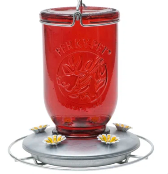 Mason Jar Hummingbird Feeder’s bright red bottle.