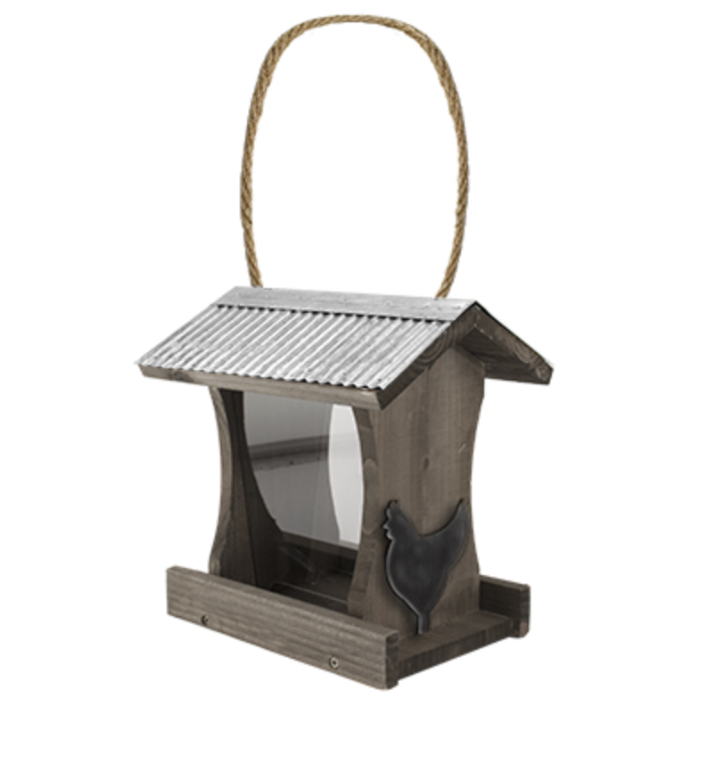 Rustic Farmhouse Tall Hopper Feeder with Metal Rooster Stamping