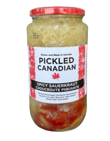 Pickled Canadian - Spicy Sauerkraut Canadian grown cabbage and Canadian made Naturally fermented A natural source of probiotics Keep Refrigerated