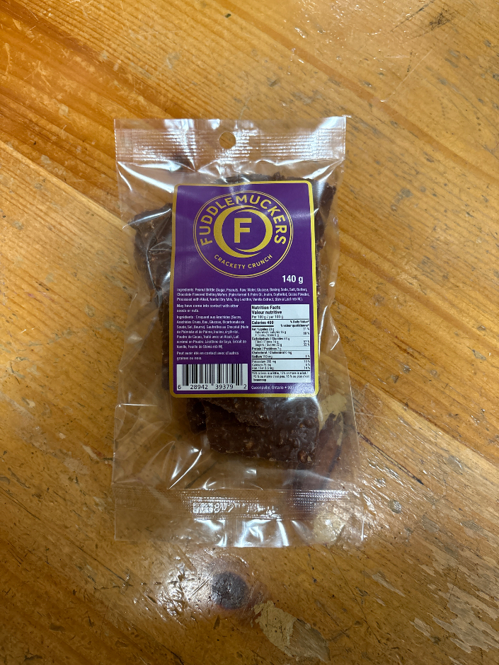 Ingredients: peanut brittle, chocolate flavoured melting wafers.