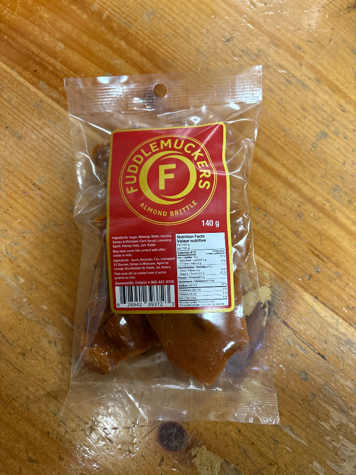 Ingredients: sugar, almonds, water, glucose, syrups and molasses, leavening agent, baking soda, salt, butter.