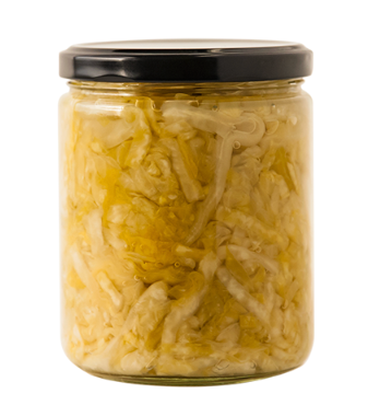 Crunchy, thick cut sauerkraut made only with local organic green cabbage and unrefined sea salt.