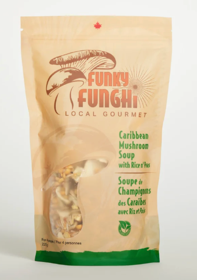 This bright and hearty soup is well balanced with large pieces of mushrooms, split peas, and the unmistakably sunny vibe of warm flavours of the Caribbean.