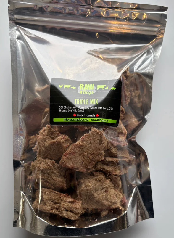 Our Freeze Dried Triple Mix provides a great source of essential minerals and nutrients. Each bag is equivalent to 10 pounds of raw ingredients and is conv