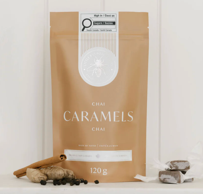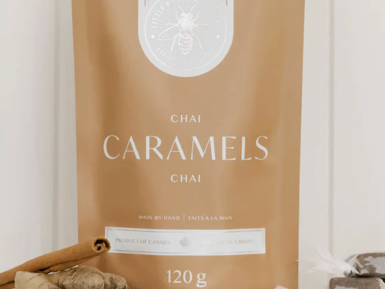 Our Chai caramels are full of flavour. Hand-muddled and infused with green cardamom, clove, ginger, pepper and cinnamon, our buttery soft caramels unfold into a cozy, layered spice finish.