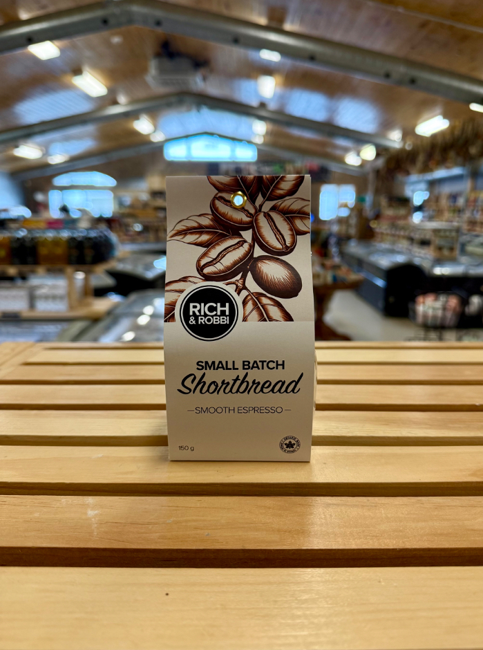 Our Dark Espresso Shortbread is infused with rich espresso, offering a deep coffee flavour and a tender, melt-in-your-mouth texture. Each cookie is hand tossed in confectioners sugar, adding a delicate sweetness that balances the smooth espresso finish.