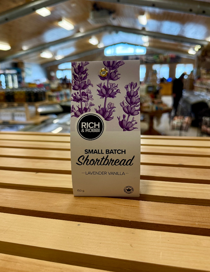Our Lavender Vanilla shortbread is a delicate spin on tradition, blending fragrant lavender with the warm comforting notes of vanilla. Each cookie is hand tossed in confectioners sugar, creating a soothing harmony of floral elegance and classic sweetness in every bite.